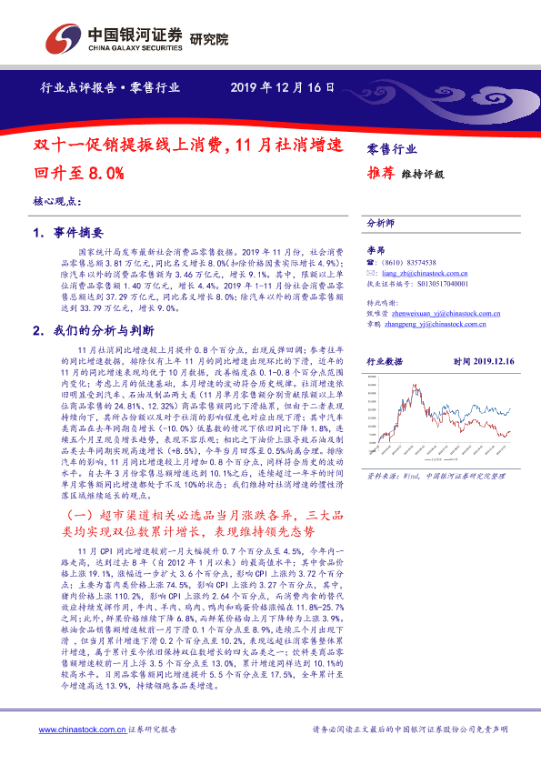 【银河证券】【20191216】双十一促销提振线上消费,11月社消增速回升至8.0%-5页