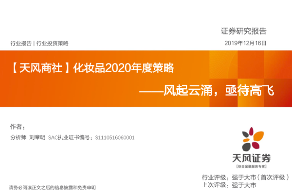 【天风证券】【20191216】化妆品2020年度策略:风起云涌,亟待高飞-23页