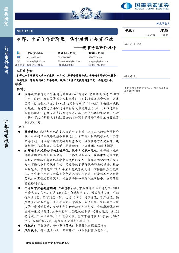 【国泰君安证券】【20191218】永辉、中百合作新阶段,集中度提升趋势不改-4页