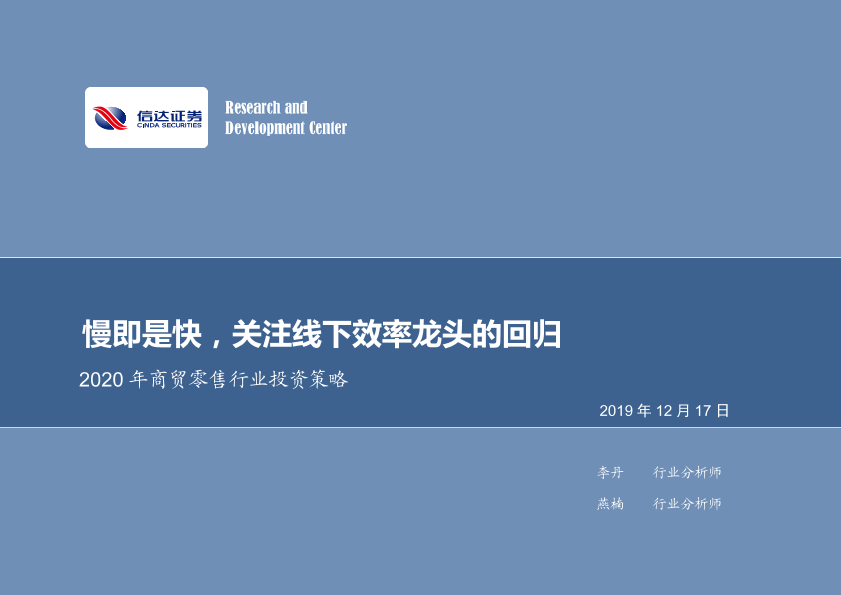 【信达证券】【20191217】2020年商贸零售行业投资策略:慢即是快,关注线下效率龙头的回归-36页