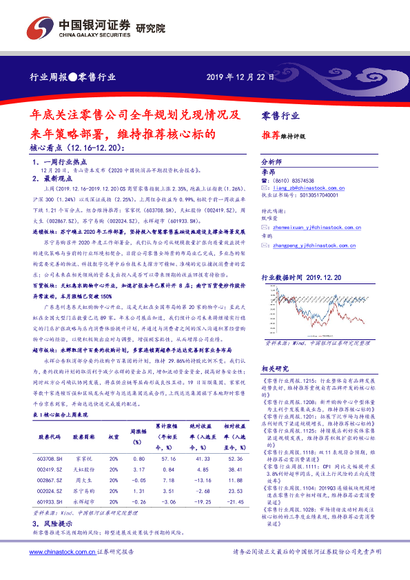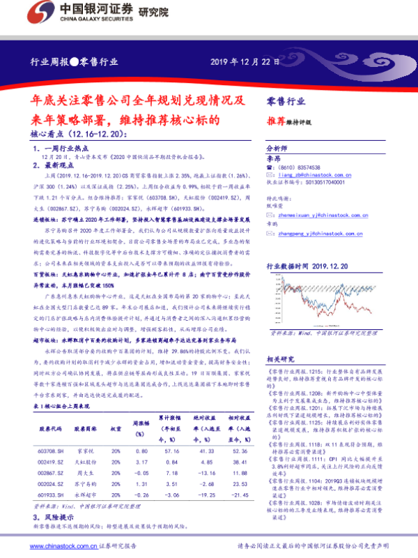 【银河证券】【20191222】零售行业周报:年底关注零售公司全年规划兑现情况及来年策略部署-30页