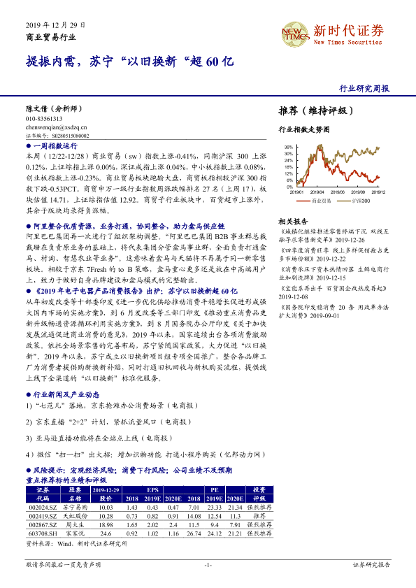 【新时代证券】【20191229】商业贸易行业研究周报:提振内需,苏宁“以旧换新”超60亿-11页
