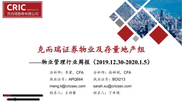 【克而瑞证券】【20200105】物业管理行业周报-12页