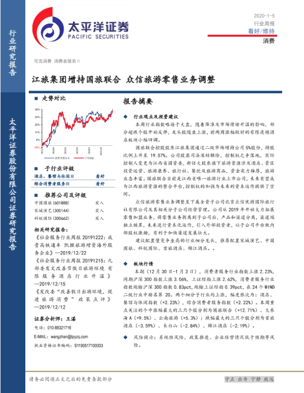 【太平洋证券】【20200105】消费行业周报:江旅集团增持国旅联合 众信旅游零售业务调整-13页