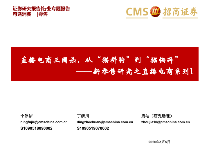 【海通证券】【20200105】直播电商三国杀,从“猫拼狗”到“猫快抖”-50页