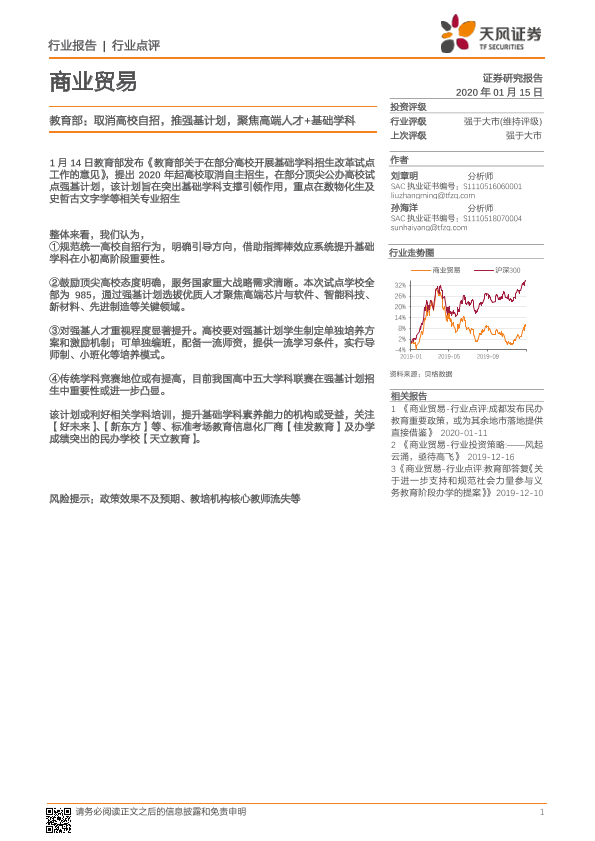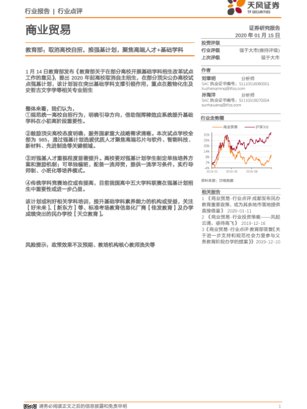 【天风证券】【20200115】教育部:取消高校自招,推强基计划,聚焦高端人才+基础学科-5页