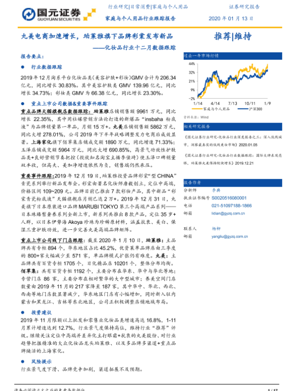 【国元证券】【20200113】化妆品行业十二月数据跟踪:丸美电商加速增长,珀莱雅旗下品牌彩棠发布新品-17页