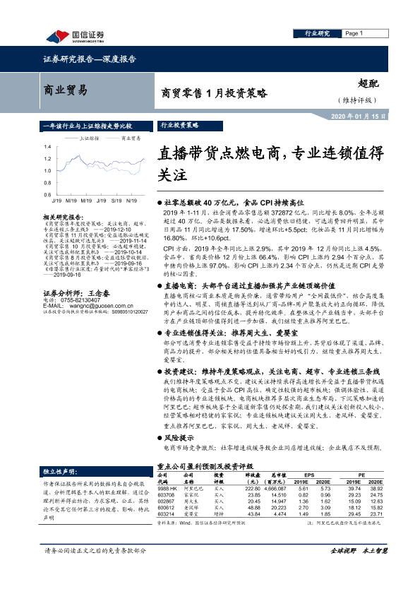 【国信证券】【20200115】1月投资策略:直播带货点燃电商,专业连锁值得关注-15页