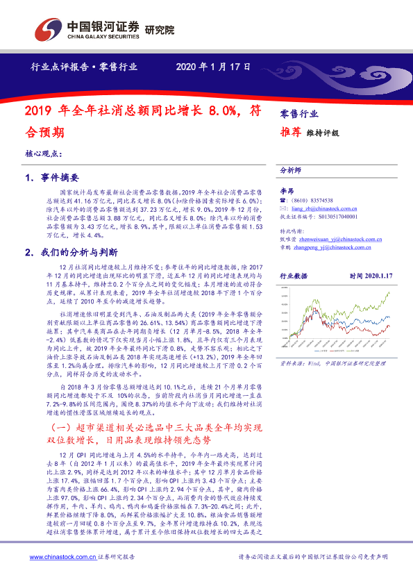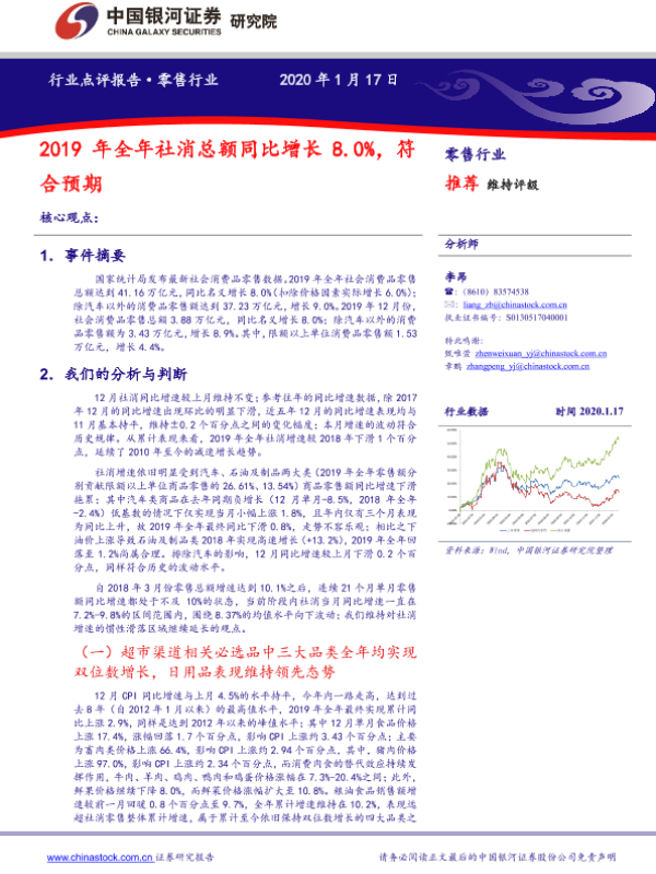 【银河证券】【20200117】2019年全年社消总额同比增长8.0%,符合预期-4页