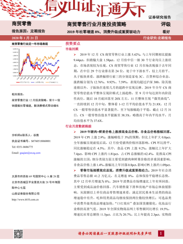 【山西证券】【20200121】2019年社零增速8%,消费升级成重要驱动力-15页