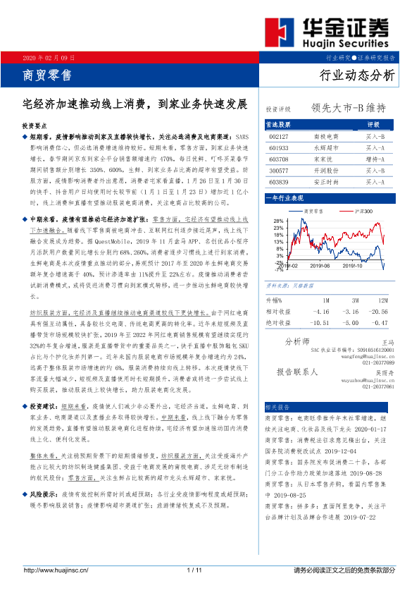 【华金证券】【20200209】商贸零售行业动态分析:宅经济加速推动线上消费,到家业务快速发展-11页
