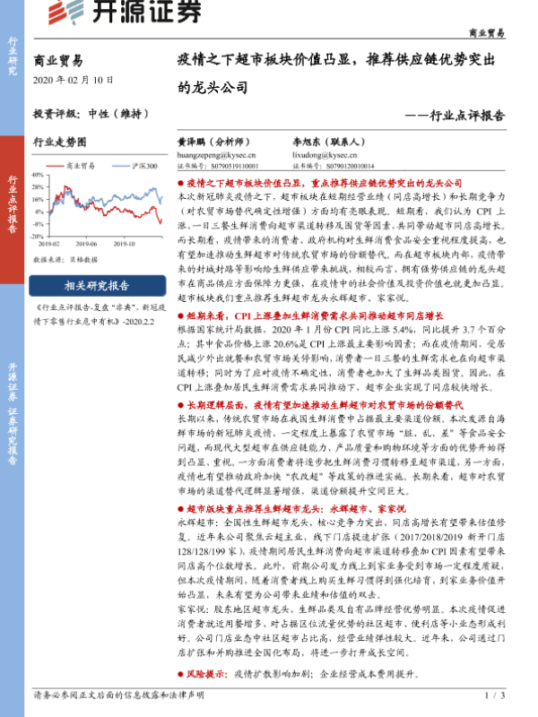 【开源证券】【20200210】疫情之下超市板块价值凸显,推荐供应链优势突出的龙头公司-3页