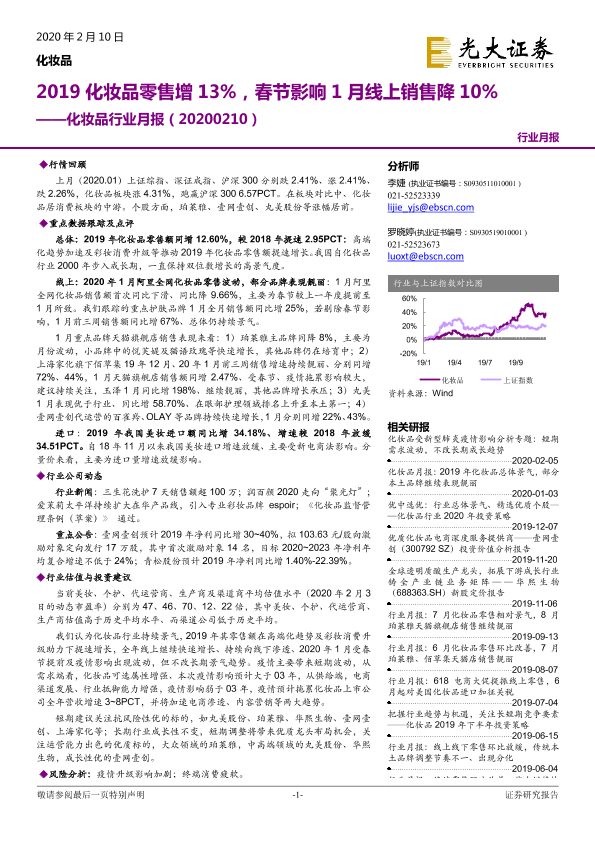 【光大证券】【20200210】2019化妆品零售增13%,春节影响1月线上销售降10%-21页
