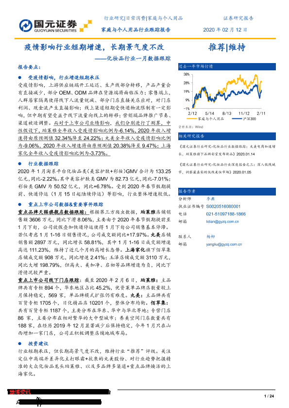 【国元证券】【20200212】疫情影响行业短期增速,长期景气度不改——化妆品行业一月数据跟踪-24页
