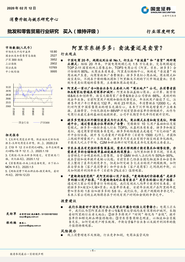 【国金证券】【20200212】批发和零售贸易行业研究:阿里京东拼多多:卖流量还是卖货?-43页
