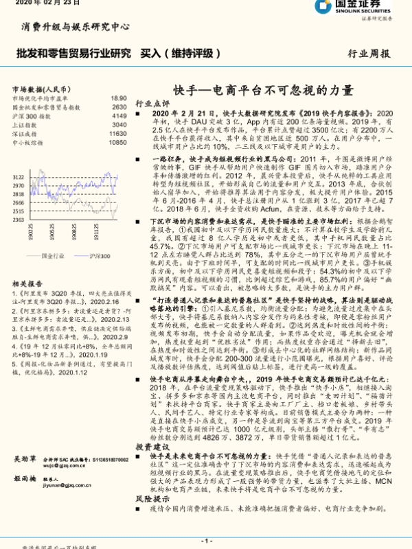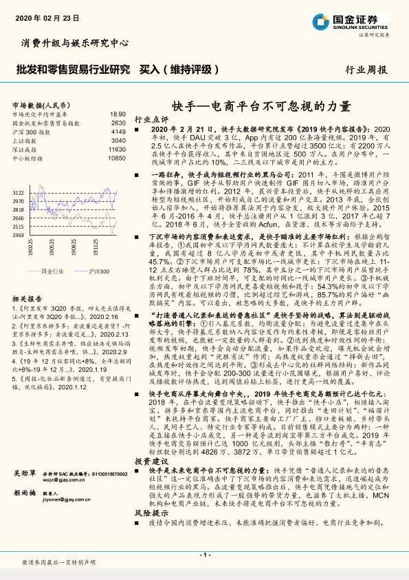 【国金证券】【20200223】快手—电商平台不可忽视的力量-8页