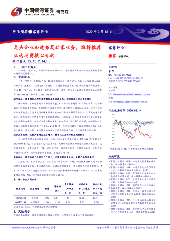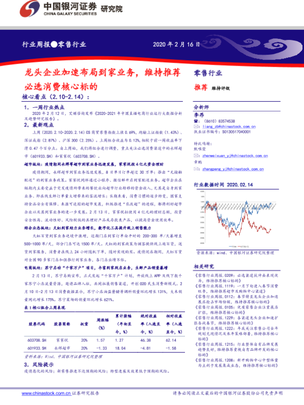 【银河证券】【20200216】零售行业周报:龙头企业加速布局到家业务,维持推荐必选消费核心标的-31页
