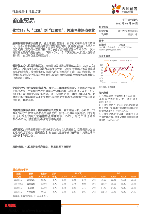 【天风证券】【20200226】化妆品:从“口罩”到“口罩妆”,关注消费热点变化-4页
