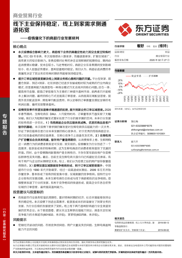 【东方证券】【20200227】疫情催化下的商超行业发展研判:线下主业保持稳定,线上到家需求侧通道拓宽-24页