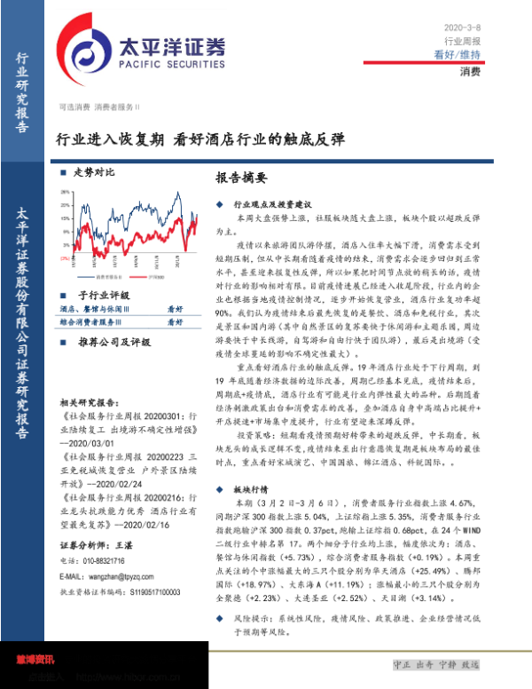 【太平洋证券】【20200308】消费行业周报:行业进入恢复期 看好酒店行业的触底反弹-13页