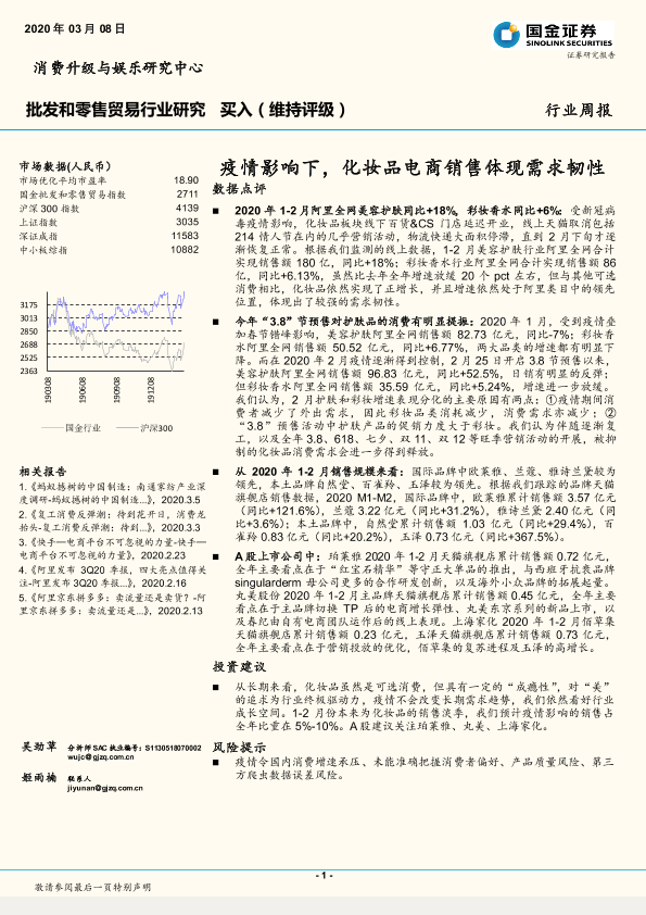 【国金证券】【20200308】疫情影响下,化妆品电商销售体现需求韧性-9页