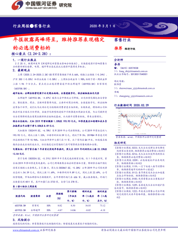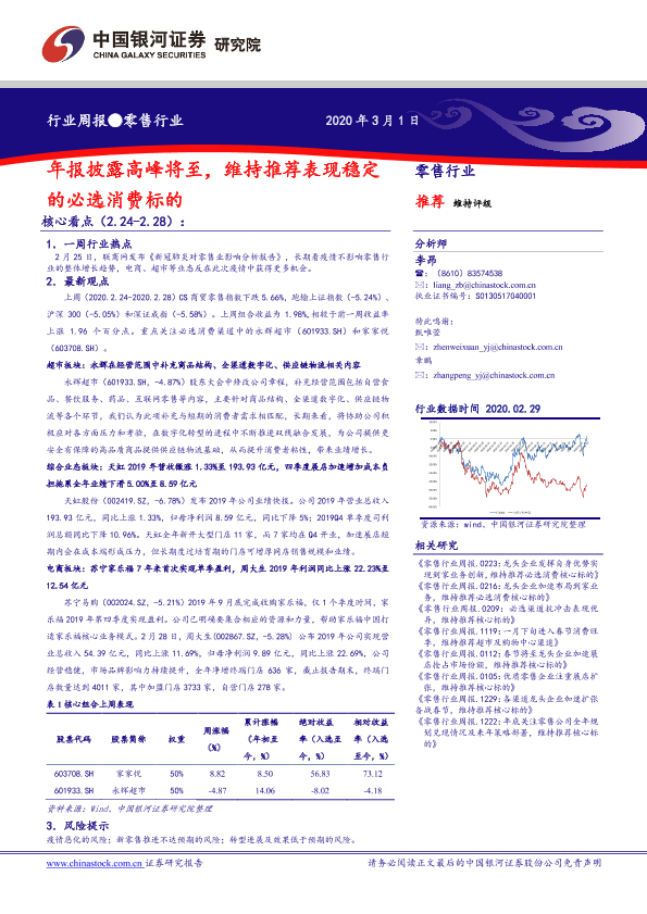 【银河证券】【20200301】零售行业周报:年报披露高峰将至,维持推荐表现稳定的必选消费标的-31页