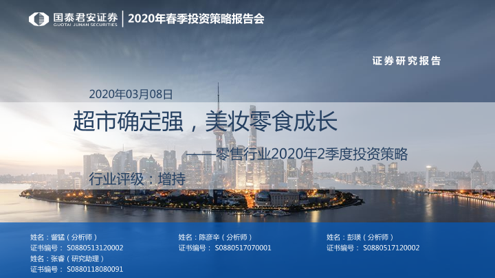 【国泰君安证券】【20200308】零售行业2020年2季度投资策略:超市确定强,美妆零食成长-48页