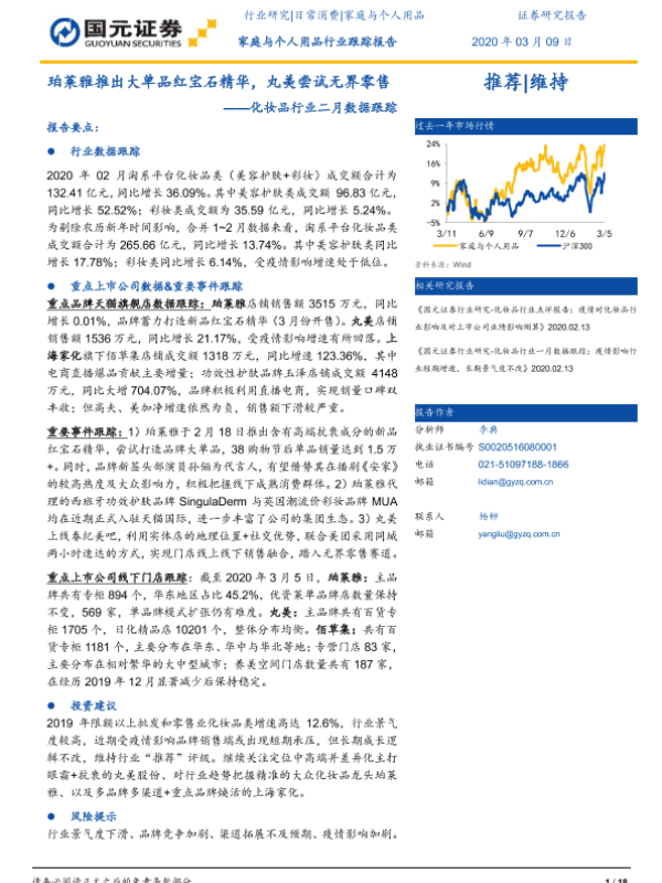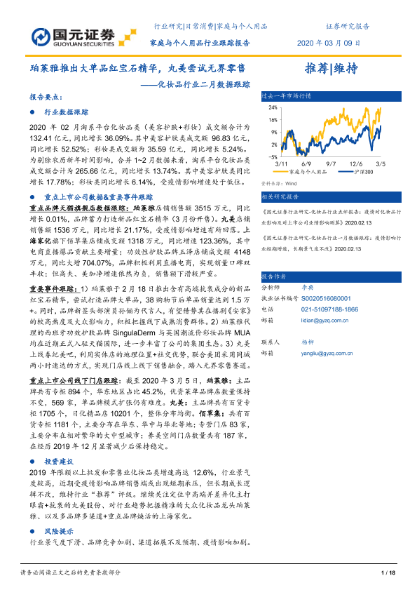【国元证券】【20200309】化妆品行业二月数据跟踪:珀莱雅推出大单品红宝石精华,丸美尝试无界零售-18页