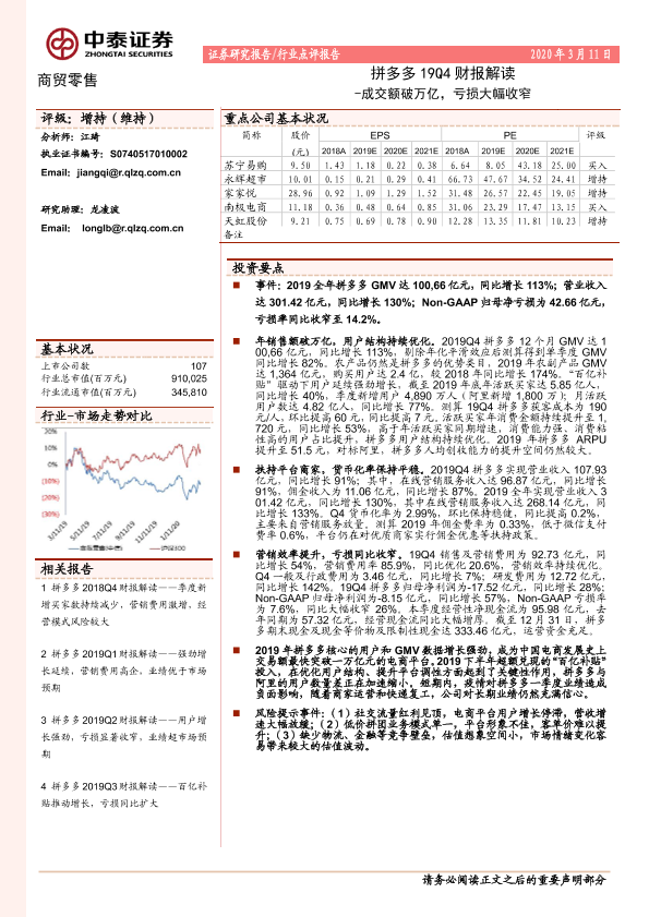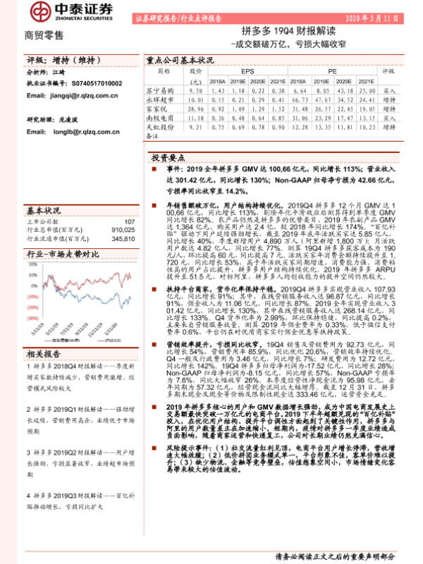 【中泰证券】【20200311】拼多多19Q4财报解读-成交额破万亿,亏损大幅收窄-5页