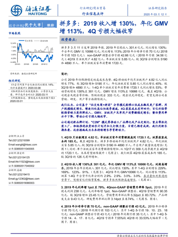 【海通证券】【20200312】拼多多:2019收入增130%,年化GMV增113%,4Q亏损大幅收窄-4页