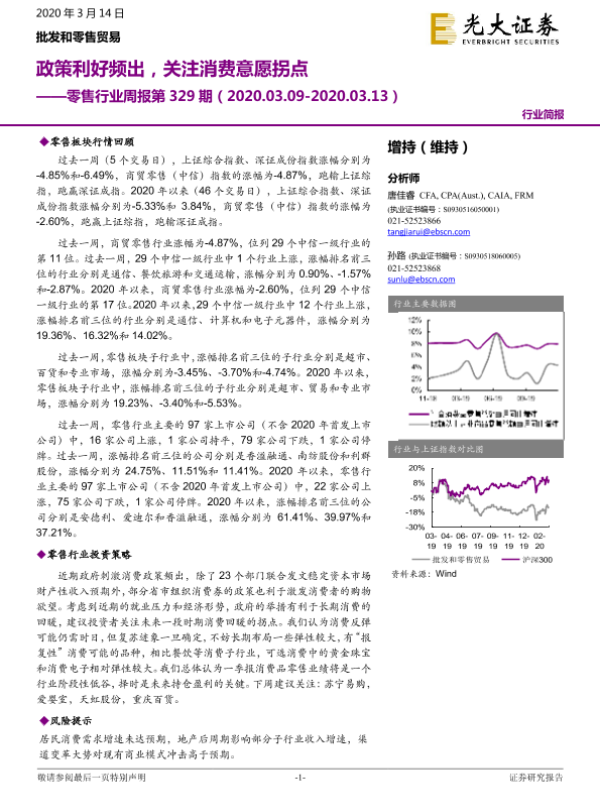 【光大证券】【20200314】零售行业周报第329期:政策利好频出,关注消费意愿拐点-10页