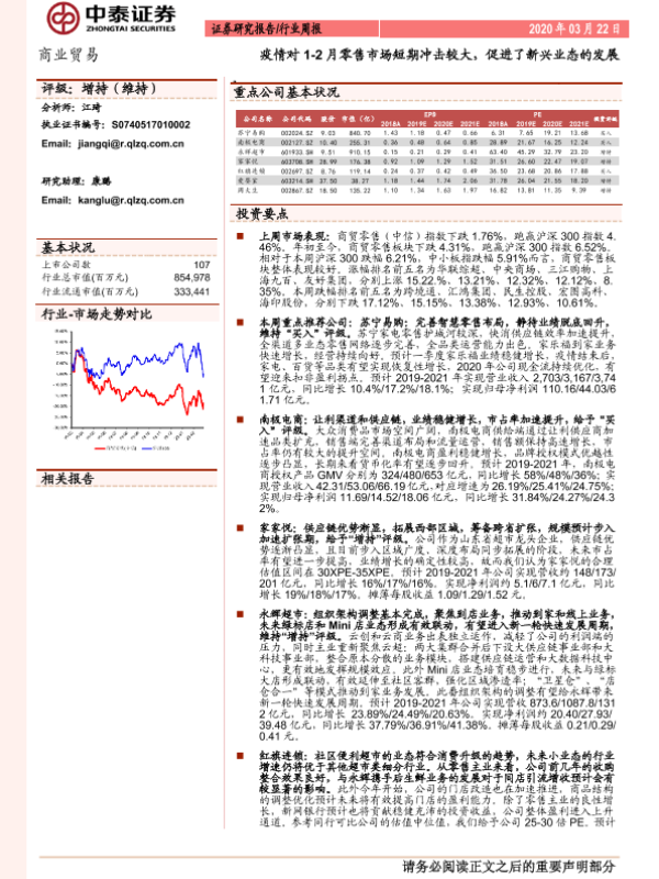 【中泰证券】【20200322】疫情对1-2月零售市场短期冲击较大,促进了新兴业态的发展-13页