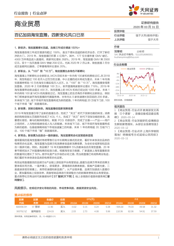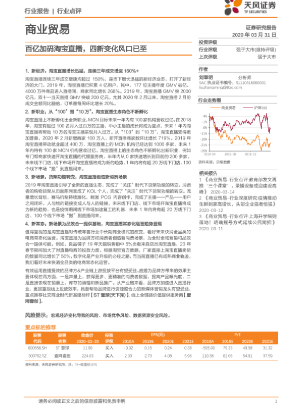 【天风证券】【20200331】商业贸易行业点评:百亿加码淘宝直播,四新变化风口已至-5页