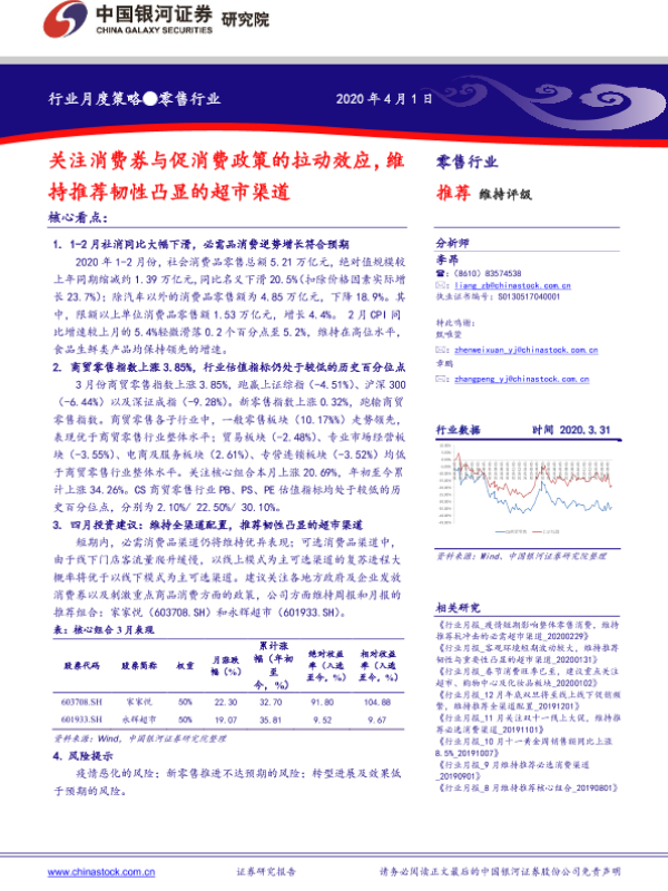 【银河证券】【20200401】零售行业月度策略:关注消费券与促消费政策的拉动效应-19页