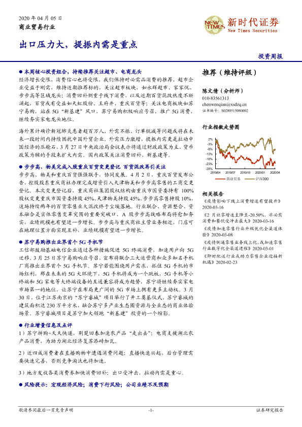 【新时代证券】【20200405】商业贸易行业投资周报:出口压力大,提振内需是重点-15页