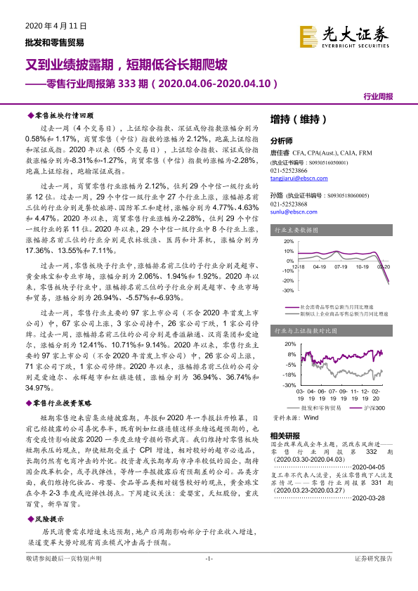 【光大证券】【20200411】零售行业周报第333期:又到业绩披露期,短期低谷长期爬坡-10页