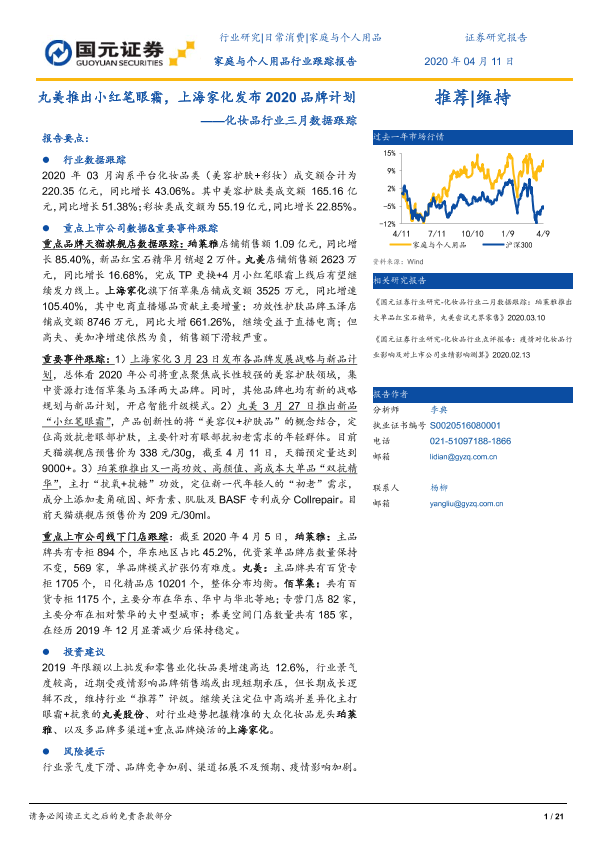 【国元证券】【20200411】化妆品行业三月数据跟踪:丸美推出小红笔眼霜,上海家化发布2020品牌计划-21页