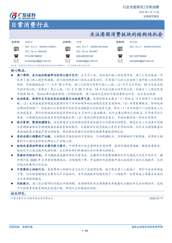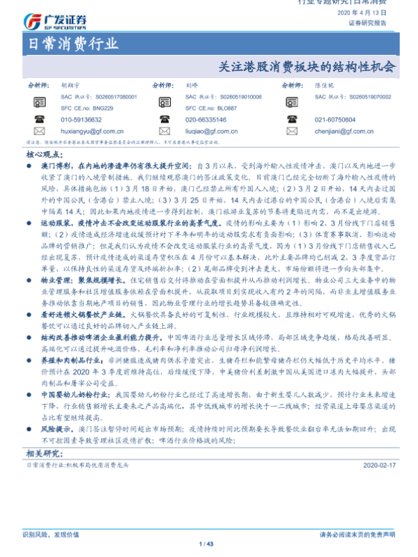 【广发证券】【20200413】日常消费行业:关注港股消费板块的结构性机会-43页