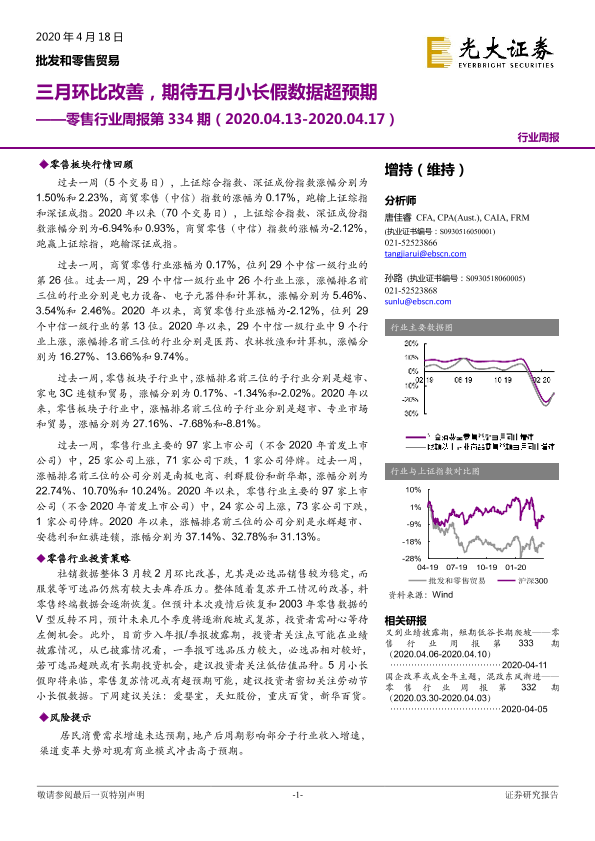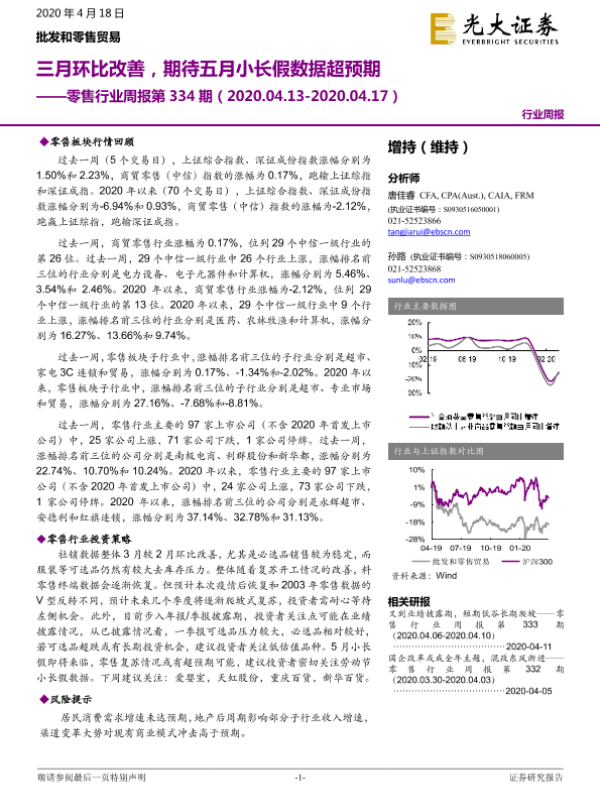 【光大证券】【20200418】零售行业周报第334期:三月环比改善,期待五月小长假数据超预期-10页