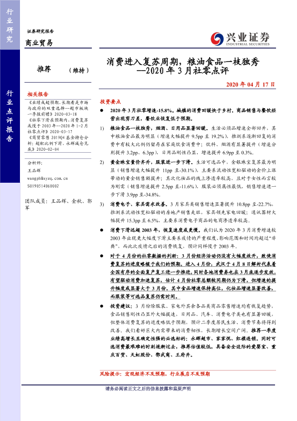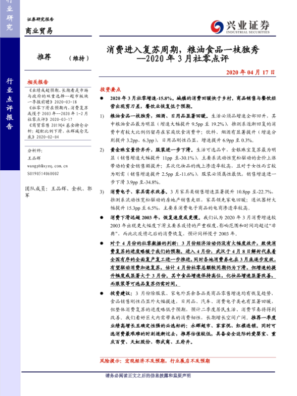 【兴业证券】【20200417】消费进入复苏周期,粮油食品一枝独秀-8页