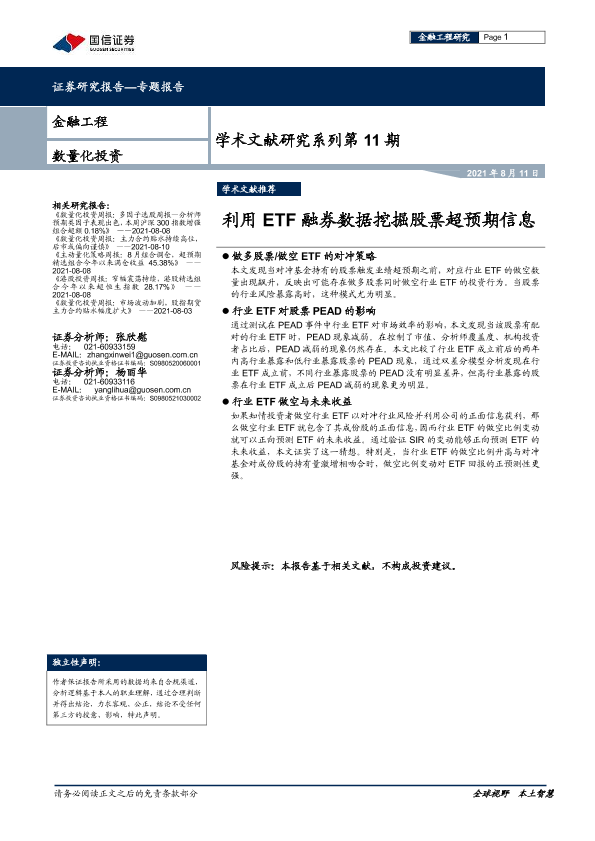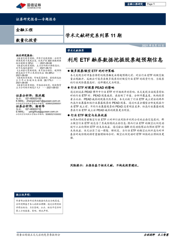 【国信证券】【20210811】学术文献研究系列第11期:利用etf融券数据挖掘股票超预期信息-21页
