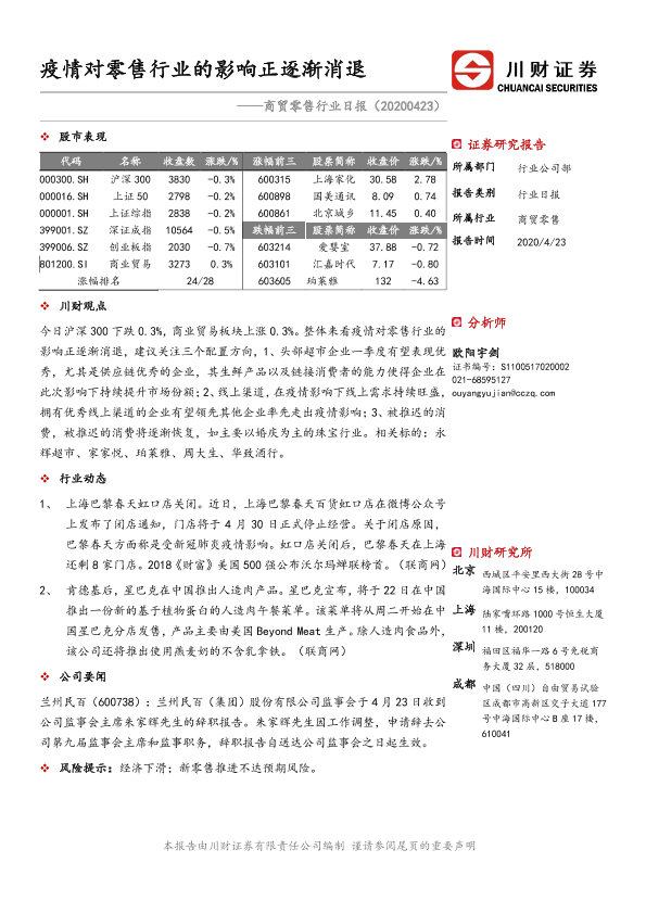 【川财证券】【20200423】商贸零售行业日报:疫情对零售行业的影响正逐渐消退-2页