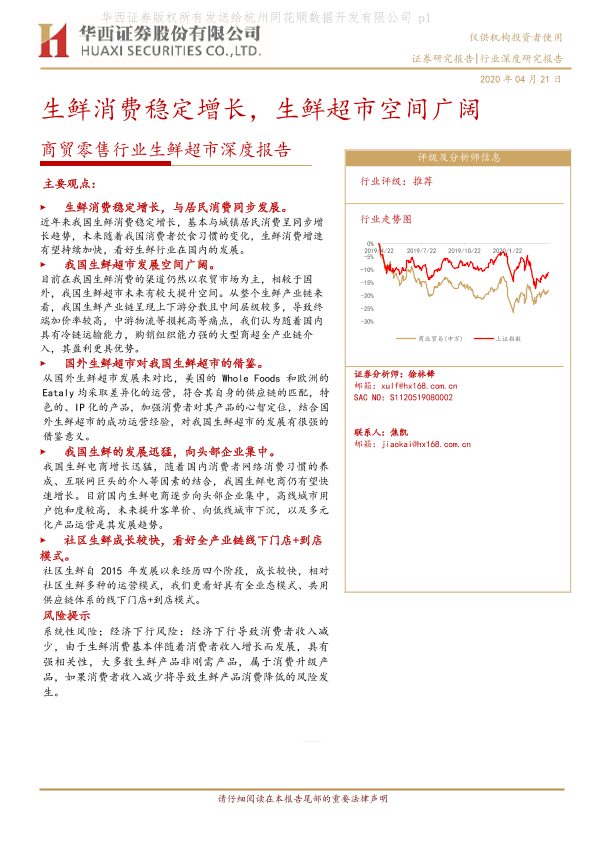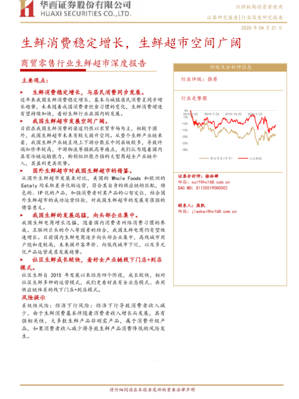 【华西证券】【20200421】商贸零售行业生鲜超市深度报告:生鲜消费稳定增长,生鲜超市空间广阔-24页