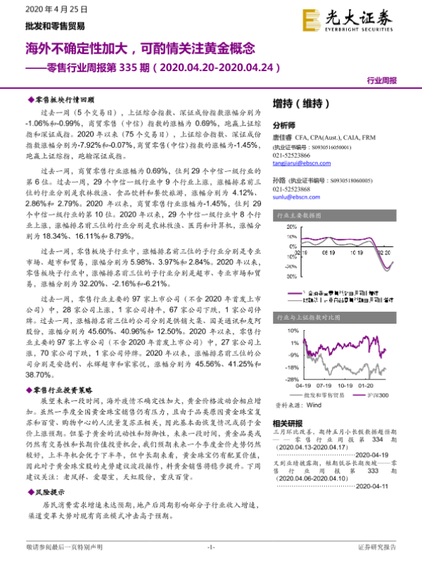 【光大证券】【20200425】零售行业周报第335期:海外不确定性加大,可酌情关注黄金概念-10页
