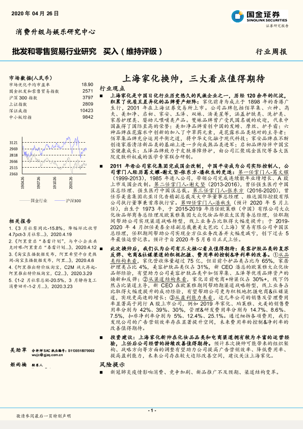 【国金证券】【20200426】批发和零售贸易行业研究:上海家化换帅,三大看点值得期待-14页