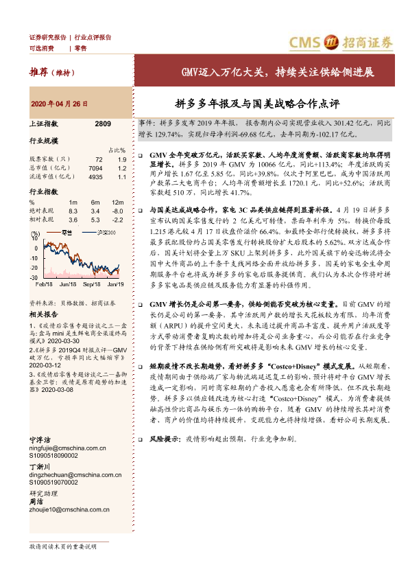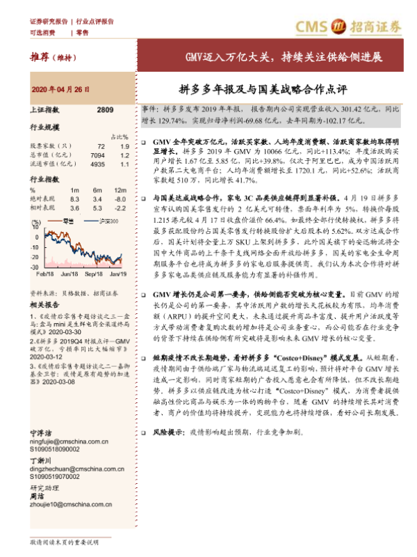 【海通证券】【20200426】拼多多年报及与国美战略合作点评:GMV迈入万亿大关,持续关注供给侧进展-2页