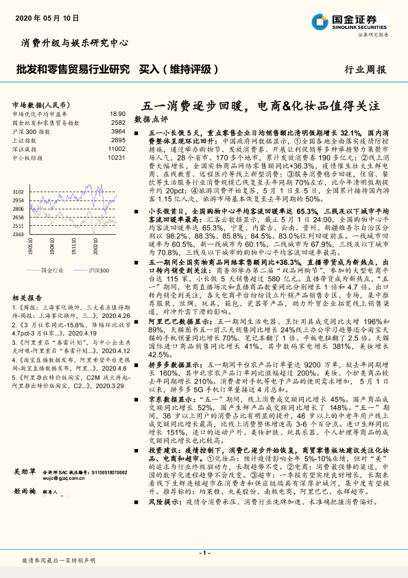 【国金证券】【20200510】批发和零售贸易行业研究:五一消费逐步回暖,电商&化妆品值得关注-8页