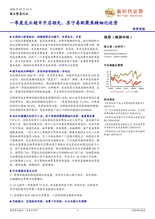 【新时代证券】【20200510】一季度龙头超市开店领先,苏宁易购聚焦精细化运营-14页
