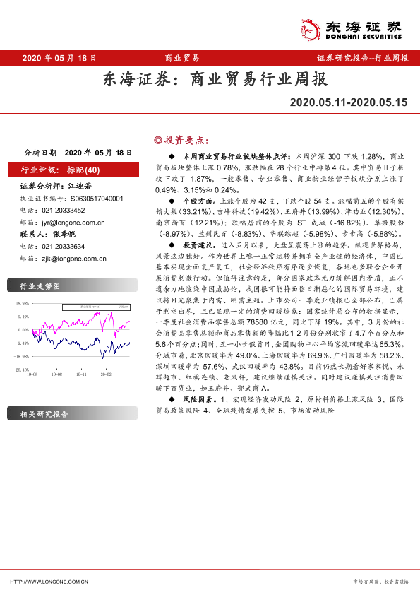商业贸易 市场动态 投资建议 股市分析 行业周报