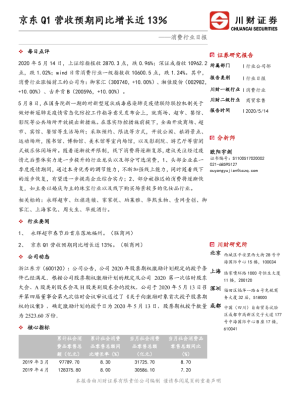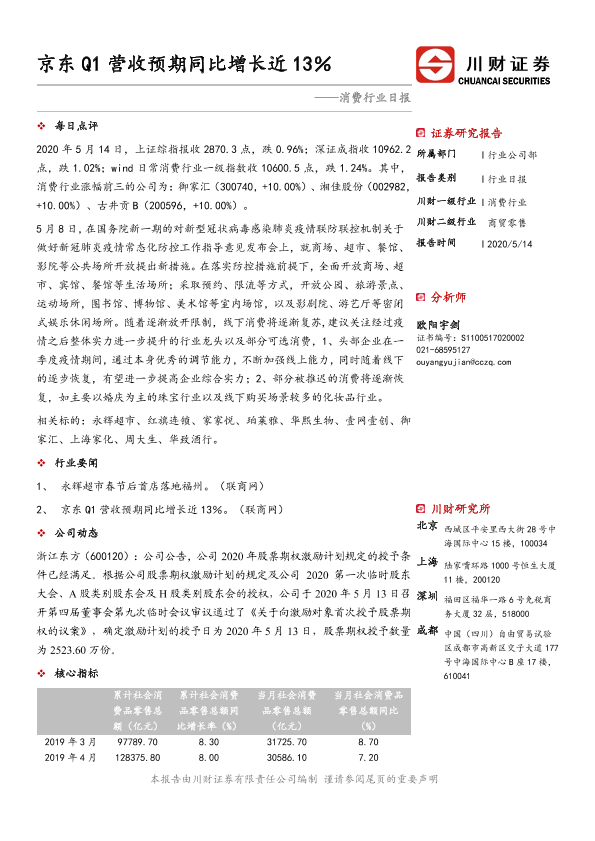 【川财证券】【20200514】消费行业日报:京东Q1营收预期同比增长近13%-3页